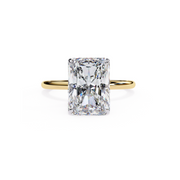 The Celeste Radiant Solitaire Ring is a tribute to those who appreciate bold elegance. The radiant cut, known for its remarkable brilliance and crisp edges, is a stunning alternative to traditional shapes. The slim, polished gold band keeps the design sleek and modern, while the solitaire setting allows the diamond to take center stage. Its refined structure ensures that the diamond catches light beautifully, resulting in an exceptional sparkle. This ring is a perfect blend of contemporary luxury and timeless sophistication, making it an unforgettable symbol of love and style.