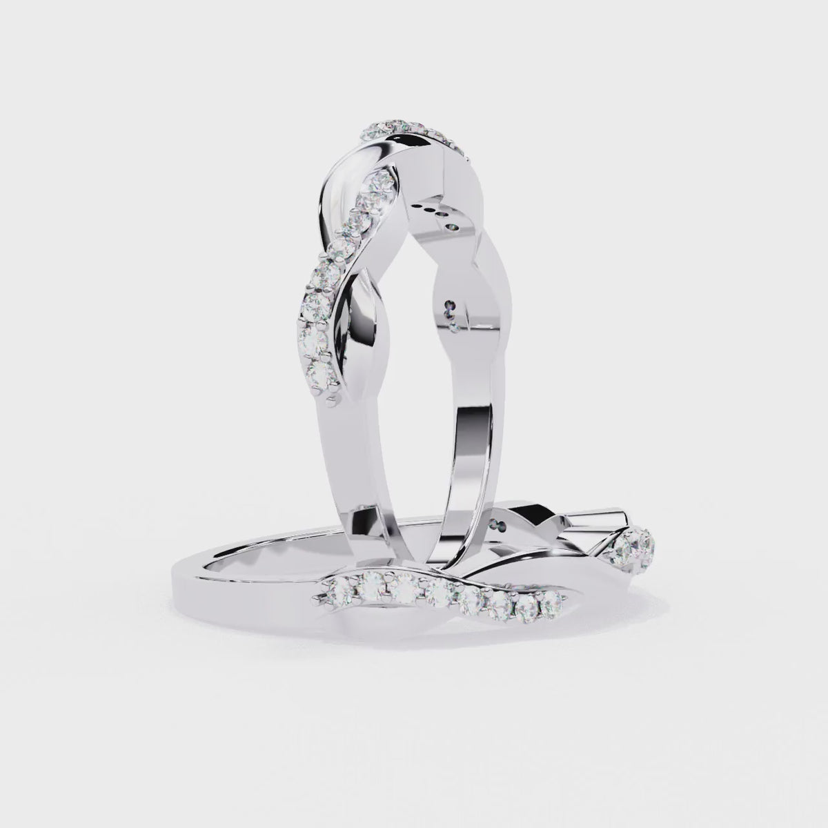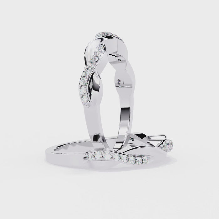 The unique twisted silhouette of this band creates a visually stunning and dynamic effect, making it a versatile piece that complements both engagement rings and other stackable bands. The round-cut diamonds are expertly set to enhance their sparkle, following the natural curves of the twisted design. With its comfortable fit and timeless beauty, this ring is ideal for everyday wear or special occasions, adding a touch of sophistication and romance to any look.