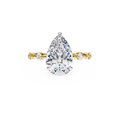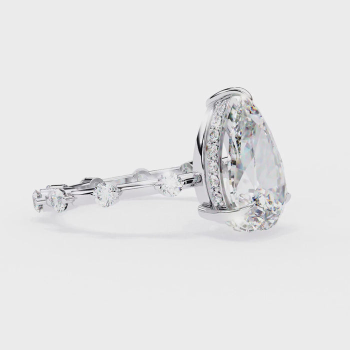 Inspired by the purity of nature and the celestial beauty of the cosmos, the Celestial Dewdrop Ring is a stunning tribute to elegance and brilliance. At its core, a resplendent pear-cut diamond, symbolizing a dewdrop kissed by the morning light, shimmers with breathtaking radiance. The distinctive band, available in 14K Yellow Gold, Rose Gold, or White Gold, features bezel-set round diamonds, reminiscent of twinkling stars adorning the night sky. Each metal variation enhances the ring’s character—Yellow Gold exudes warmth and tradition, Rose Gold adds a touch of romantic charm, and White Gold elevates the design with modern sophistication. Available with both natural and lab-grown diamonds, this ring is a timeless expression of love, purity, and celestial wonder, designed for those who seek brilliance in its purest form.