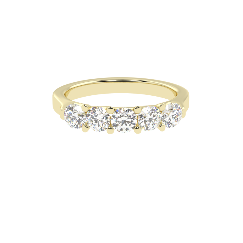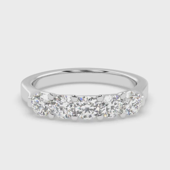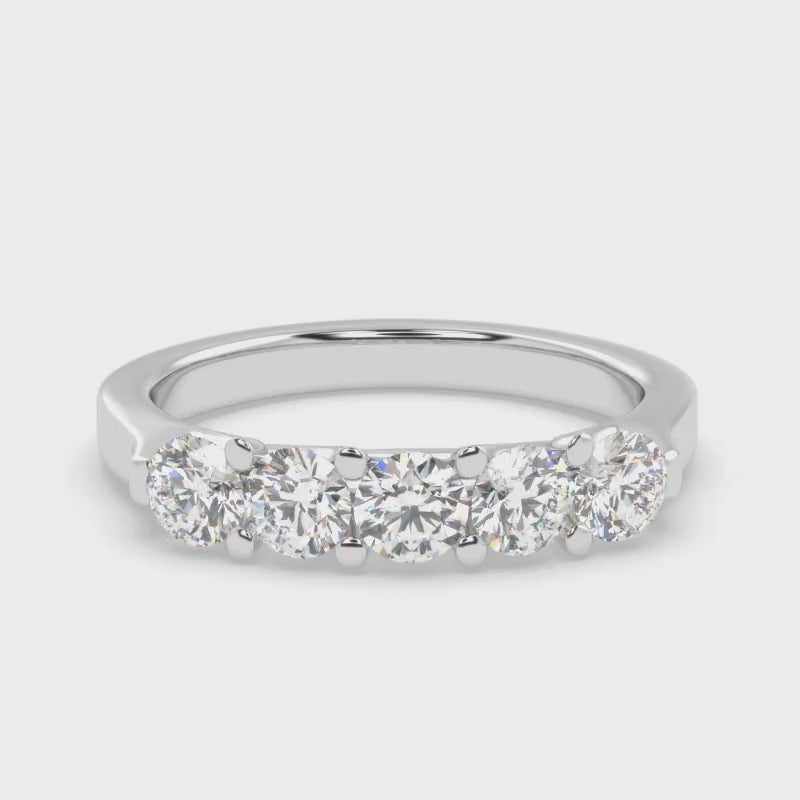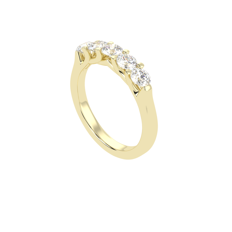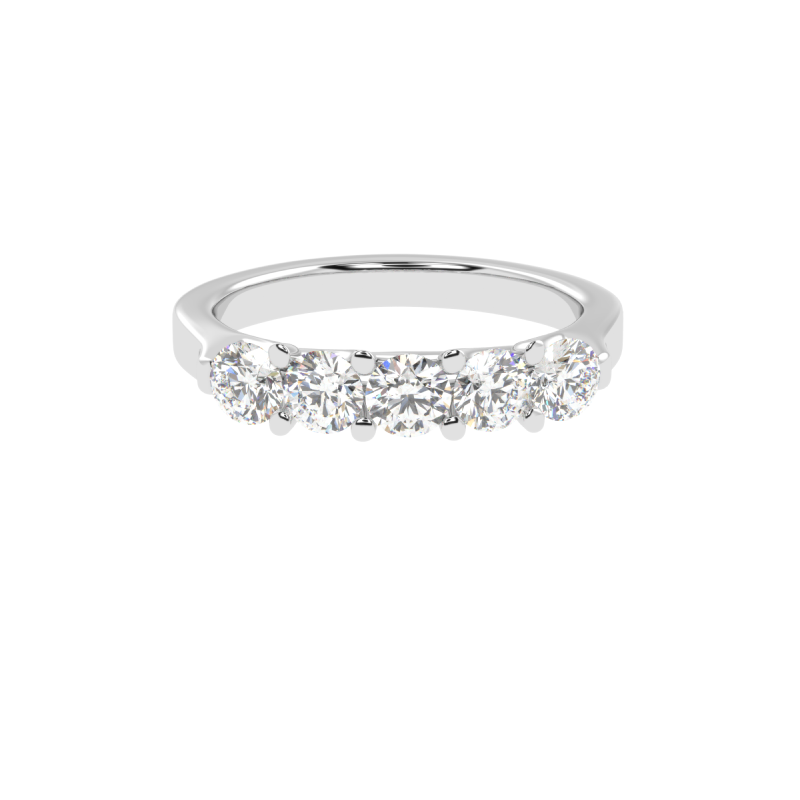 The Celestia Quintet ring is a stunning representation of brilliance and harmony, featuring five exquisite round-cut diamonds set in a classic shared-prong design. Each diamond radiates exceptional sparkle, symbolizing the milestones of love, commitment, and cherished memories. With its timeless yet modern appeal, this ring is an ideal choice for anniversaries, engagements, or as an elegant statement piece.
