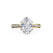 Crafted from 14K gold, the Eternal Grace Ring is available in yellow, white, and rose gold, each offering a distinct elegance. The yellow gold version exudes warmth and classic charm, the white gold enhances the brilliance of the diamonds with a sleek, contemporary touch, while the rose gold adds a romantic and modern appeal. The band is adorned with pavé-set diamonds, adding a shimmering accent that complements the stunning oval-cut center diamond, which is held securely in a refined prong setting for maximum light reflection. Designed for both beauty and durability, this exquisite ring embodies timeless sophistication and lasting luxury.