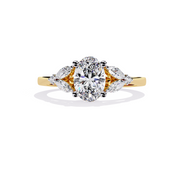 The Celestial Grace Ring is a masterpiece of elegance, featuring a brilliant oval-cut diamond at its heart, radiating clarity and timeless beauty. Flanked by marquise-cut side diamonds, it evokes the celestial charm of a shimmering constellation, while the intricate gold detailing beneath the stones adds depth and sophistication. Crafted in 14K Yellow Gold, White Gold, or Rose Gold, each variation offers a distinct allure—Yellow Gold enhances its warmth, White Gold accentuates its brilliance, and Rose Gold exudes romantic charm. Perfect for engagements, anniversaries, or as a statement of refined taste, the Celestial Grace Ring is a symbol of everlasting love, grandeur, and the luminous beauty of the universe.