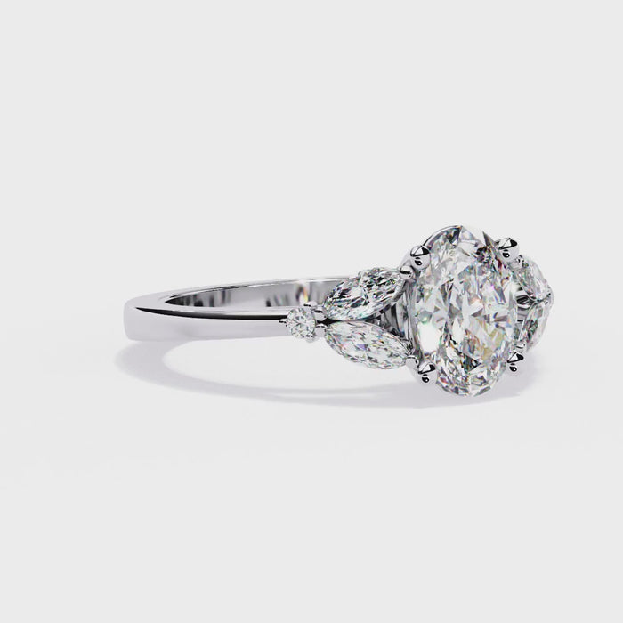 The Celestial Grace Ring is masterfully crafted from 14K solid gold, offering a choice of Yellow Gold, White Gold, or Rose Gold, each lending a distinct character to the design. The centerpiece features a brilliant oval-cut diamond, known for its exceptional fire and brilliance, securely set in a classic four-prong setting for maximum light reflection. Complementing the center stone, the marquise-cut side diamonds are meticulously arranged to enhance the ring’s celestial allure. The under-gallery showcases intricate gold detailing, adding a refined architectural element to the design. Each diamond is hand-selected for superior clarity and brilliance, ensuring an extraordinary sparkle that lasts a lifetime. This luxurious composition makes the Celestial Grace Ring a true masterpiece of craftsmanship and elegance.