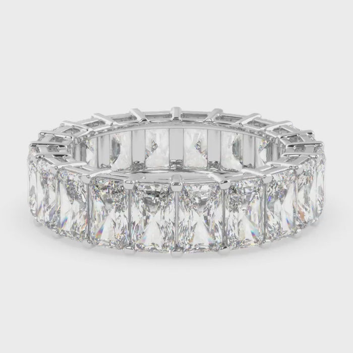 Designed for maximum brilliance, the Infinity Radiance ring features radiant-cut diamonds set in a secure yet delicate prong setting. The eternity design symbolizes everlasting commitment, making it a perfect piece to wear alone or stack with other rings. Its refined craftsmanship ensures comfort and sophistication, making it an exquisite choice for those who seek luxury and meaning in their jewelry.
