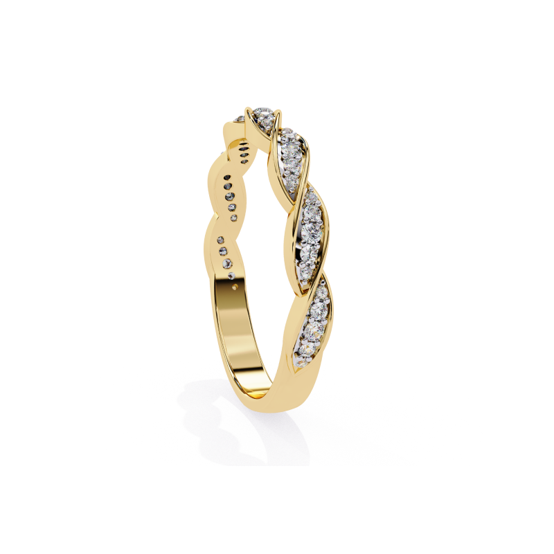 The Eternal Vine ring is a delicate and enchanting piece inspired by nature’s beauty. The elegant twisting vine design, adorned with sparkling diamonds, symbolizes growth, eternity, and everlasting love. Each diamond is meticulously set within the flowing gold framework, creating a seamless and graceful appearance. This band’s intricate design makes it a perfect wedding band, stacking ring, or a standalone statement piece. Its timeless allure and refined craftsmanship make it an ideal choice for those who appreciate delicate yet striking jewelry.