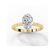 Crafted from solid 14K gold, this ring offers durability and luxurious shine. The oval-cut diamond is secured in a prong setting, allowing optimal light reflection for an exquisite glow. Available in yellow, white, or rose gold, the band complements the brilliance of the diamond, making it a versatile and enduring piece.