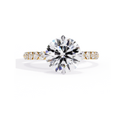 The Stellar Radiance Ring is a masterpiece of celestial beauty, meticulously crafted to capture the essence of cosmic wonder. The exquisite round-cut diamond at its center symbolizes a radiant star, set to perfection in a secure prong setting that allows maximum light to pass through, enhancing its brilliance from every angle. Surrounding this mesmerizing focal point, the pavé-set brilliant-cut diamonds on the band create a seamless flow of sparkle, reminiscent of a dazzling night sky. The 14K Yellow, Rose, or White Gold band provides a lustrous foundation, offering both elegance and durability. Every detail of this ring is thoughtfully designed to exude sophistication, making it a symbol of eternal love and a beacon of timeless glamour. Whether as an engagement ring or a cherished heirloom, the Stellar Radiance Ring is a tribute to those who shine with confidence, grace, and an undeniable celestial glow.