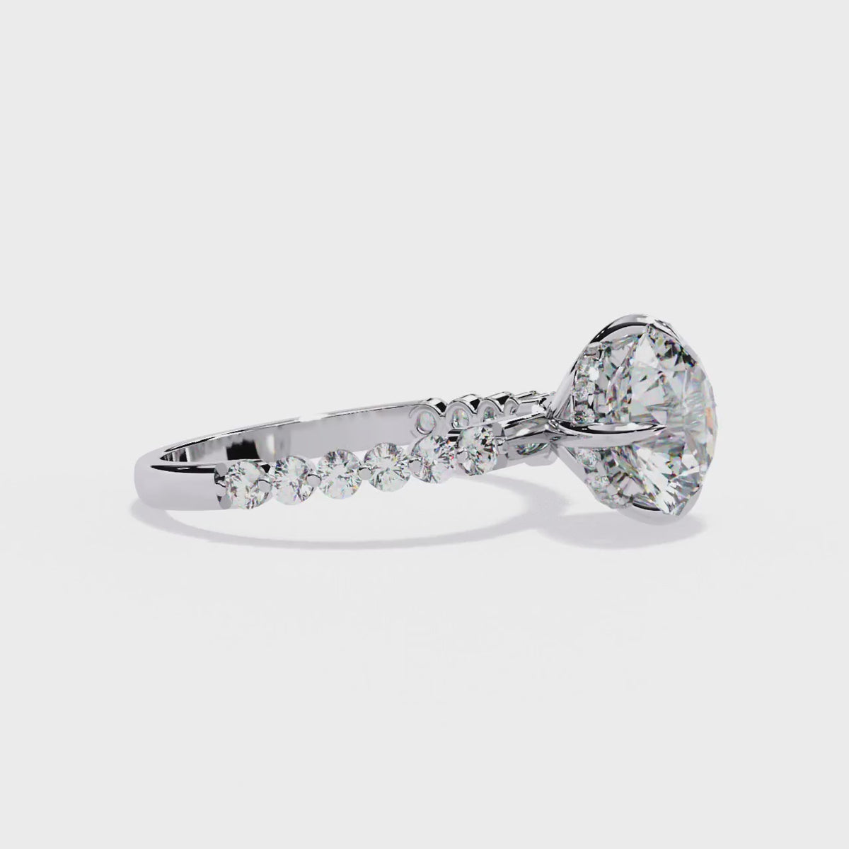The Stellar Radiance Ring is a breathtaking celebration of light and brilliance, crafted to embody the boundless beauty of the cosmos. At its heart, a magnificent round-cut diamond takes center stage, held in a refined prong setting that enhances its fire and scintillation. The band, available in 14K Yellow, Rose, or White Gold, is adorned with a stunning array of brilliant-cut diamonds, creating an endless cascade of radiance that mirrors the twinkling stars of a luminous galaxy. A symbol of passion, elegance, and timeless devotion, the Stellar Radiance Ring is designed for those who shine effortlessly and embrace the extraordinary.